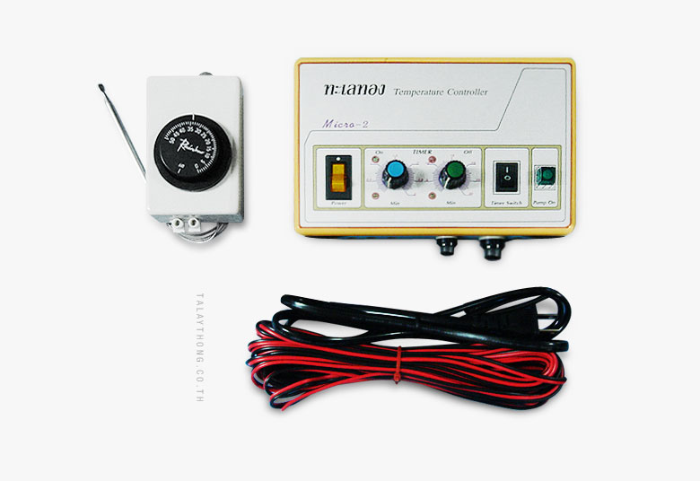 ชุดควบคุมอุณหภูมิทะเลทองใช้ติดตั้งควบคุมปั๊มน้ำ เพื่อให้อุณหภูมิ ความชื้น ภายในโรงเรือน มีอุณหภูมิ ที่เหมาะสม